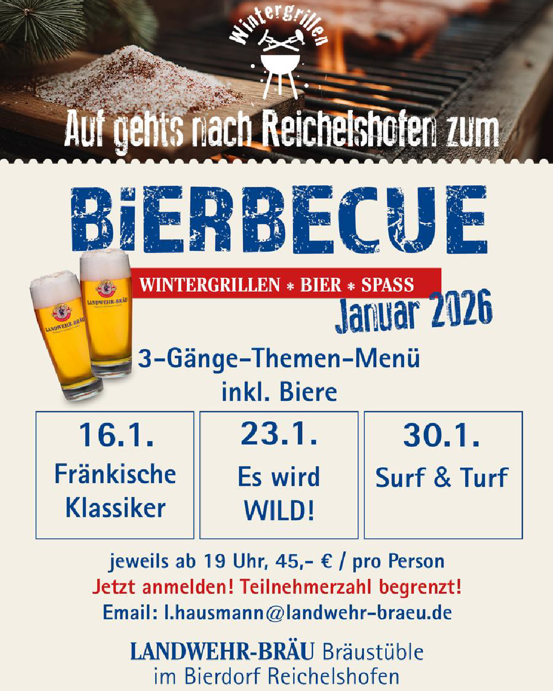 Anmeldung: per E-Mail – die Plätze sind begrenzt! l.hausmann@landwehr-braeu.de