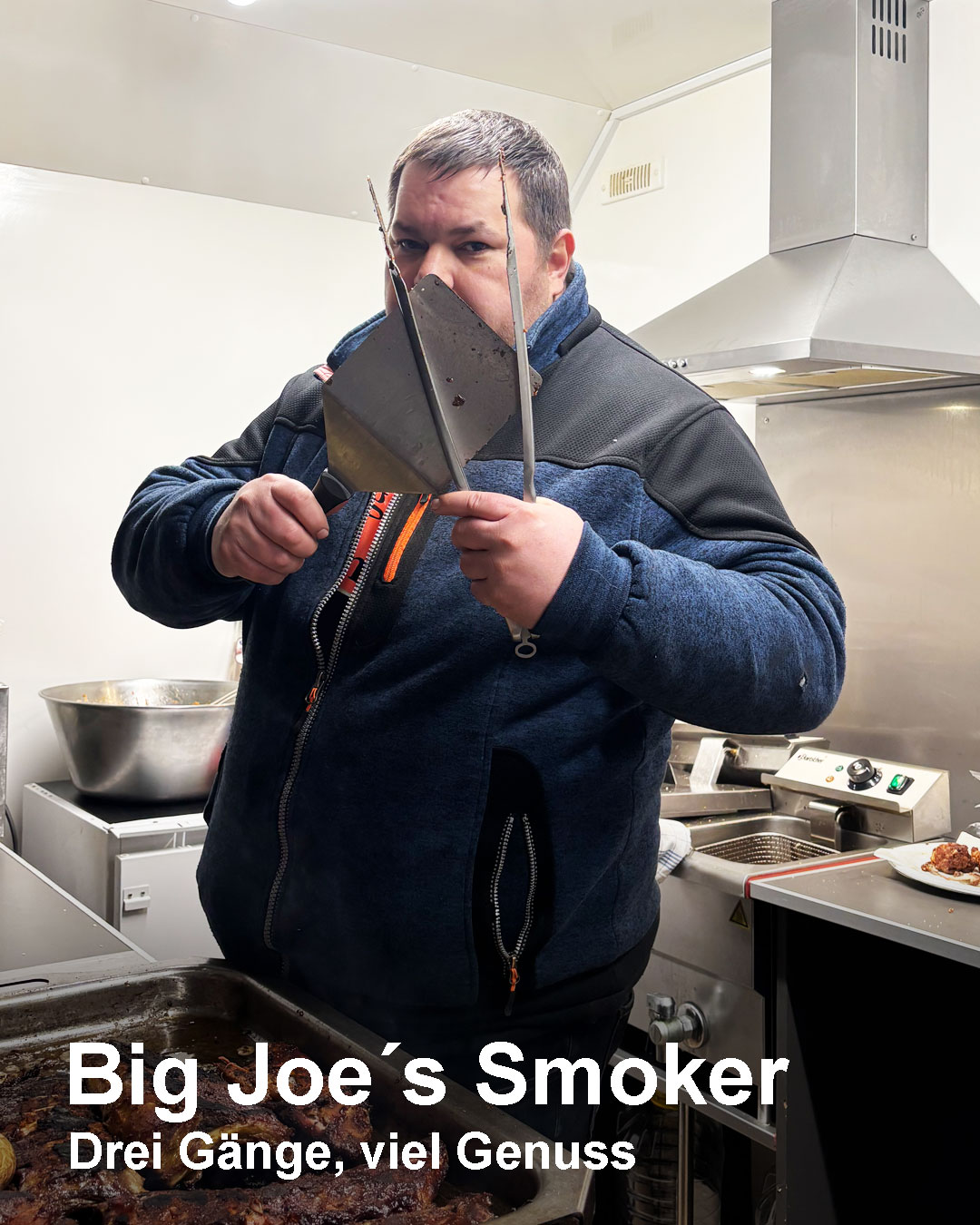Das wird kein steifes Menü, sondern ein gemütlicher Abend mit gutem Essen, viel Bier und ausgelassener Stimmung. Drei kräftige Gänge, vom Coleslaw mit Chickenwings über einen saftigen Kammbraten-Burger bis hin zu Spareribs mit Kartoffeln vom Food Truck von Big Joe´s Smoker sorgten dafür, dass niemand hungrig blieb.